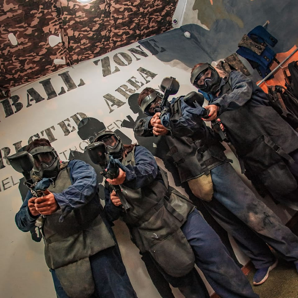 Nivel de dificultad: intermedio Edad mínima: 13 años Duración: máx 30 min por partida o hasta terminar municiones contratadas Cant de personas: de 4 a 20 jugadores